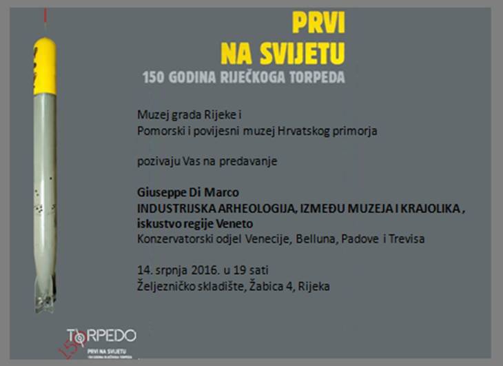 La conferenza si è tenuta il 14.07.2016 negli ex magazzini ferroviari della città di Rijeka/Fiume, per il ciclo di conferenze: Prvi na svijetu - sto i pedeset godina riječkog torpeda dal 19.05.2016 al 21.12.2016 ed in occasione della mostra “Prvi na svijetu - 150 godina riječkoga torpeda”